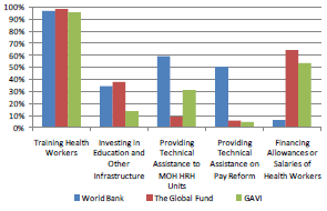 This paper provides a first step in a detailed comparative analysis of key development and financing agency work in the area of HRH. Specifically, it examines the HRH-related activities of GAVI, the Global Fund, and the World Bank. In 2010, the three agencies combined accounted for 20% of the total global development assistance for health and for 53% of all multilateral development assistance for health. These three agencies, together with WHO, are collaborating to harmonize health system strengthening actions and publicly make available data which allows detailed comparative analysis of country-level investments in health systems strengthening activities, including HRH. The analysis sheds lights on areas where closer agency coordination and alignment is needed.
